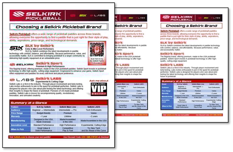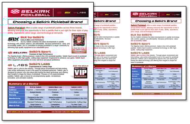 Note: While I attempt to keep up with the ever-changing Selkirk lineup and pricing, it can be a challenge. If you see it is lacking, please drop me a line if you need it updated for your event.